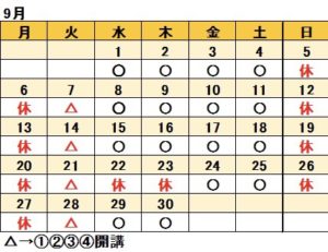 9月の日程表です。