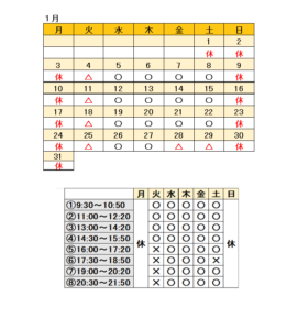 中百舌鳥本校の1月の日程です。