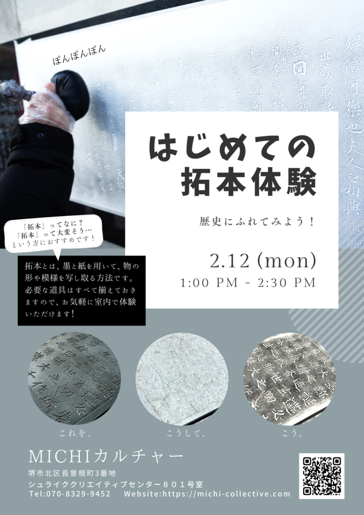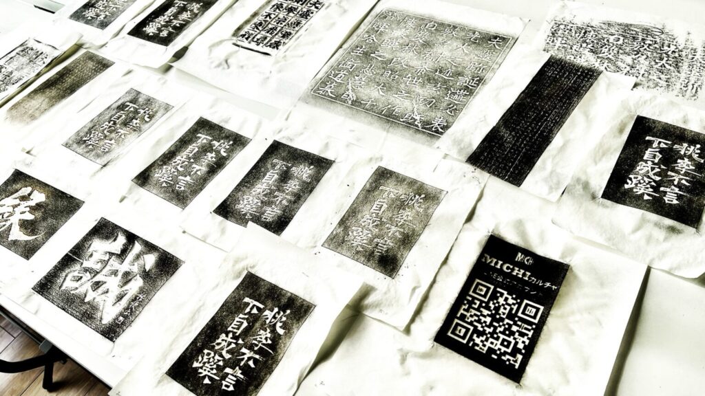 拓本というのは、石碑や金属板、木材などに刻まれた文字や図案を紙に転写して保存する技術やその成果物を指します。今回実施したものとは手法は違いますが、「魚拓」などイメージしやすいかと思います。詳しい話は、いつか書きます。