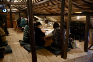 秘密基地でのイベント開催にあたっては、秘密を共有する仲間たちをよく知る必要があります。という訳で、いつもの(?)書で自己紹介を行いました。