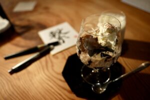 開催から1時間程度たったころ、あらかじめご注文させていただいていたデザートと飲み物を運んできていただきました。ベストなタイミングでした。休憩も大事です。