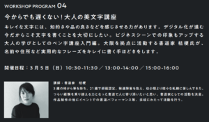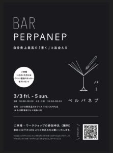 なかもず本校Staffの髙田です! 2023/3/5にコクヨ様東京品川オフィス「THE CAMPUS」にて開催されたイベント『BAR PERPANEP』にて、本校代表講師の桔梗がペン字講師として参画させていただきました!