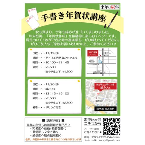 【イベント報告】手書き年賀状講座(2024:辰)@なかもず本校