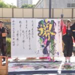 堺まつりにおいて、我々は代表講師である桔梗の書道パフォーマンスと、大小路五間様にて開催された連動企画「五間の市」に出展。