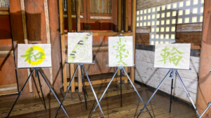 日本三如意輪の一つとして知られる、国宝「如意輪観音菩薩」のすぐ正面に展示いただいております。なんというご縁でしょうか。本堂内での書展示は歴史上、初のことではないかとお聞きして背筋が伸びました。