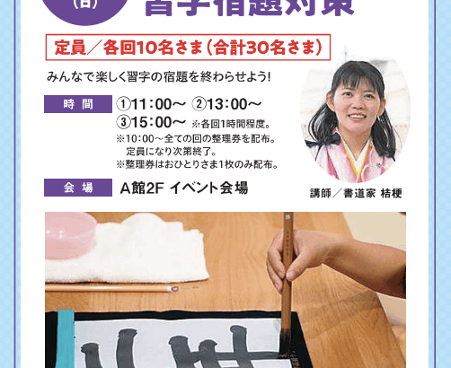 【参加無料】夏休み習字宿題対策イベント@アクロスモール泉北