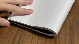 この高級感をどう活かそうか。シンプルな高級感が漂う装丁は、一生大切に保管したいような日記やライフログに最適かなぁと思いました。または、360度開く特徴を活かして、さっとビジネスシーンで使うのもありかもしれません。細部に神は宿りますからね。ちょっとしたメモに、この高級感を放つノートを使うビジネスマンは只者ではありません。きっと、取引先は恐れおののき、契約は既に締結されていることでしょう。