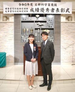 毛筆書写技能検定最高位一級を首席合格『文部科学大臣賞』