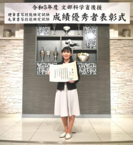 【文部科学大臣賞】生徒様が硬筆書写技能検定 準2級で『文部科学大臣賞』を受賞しました!